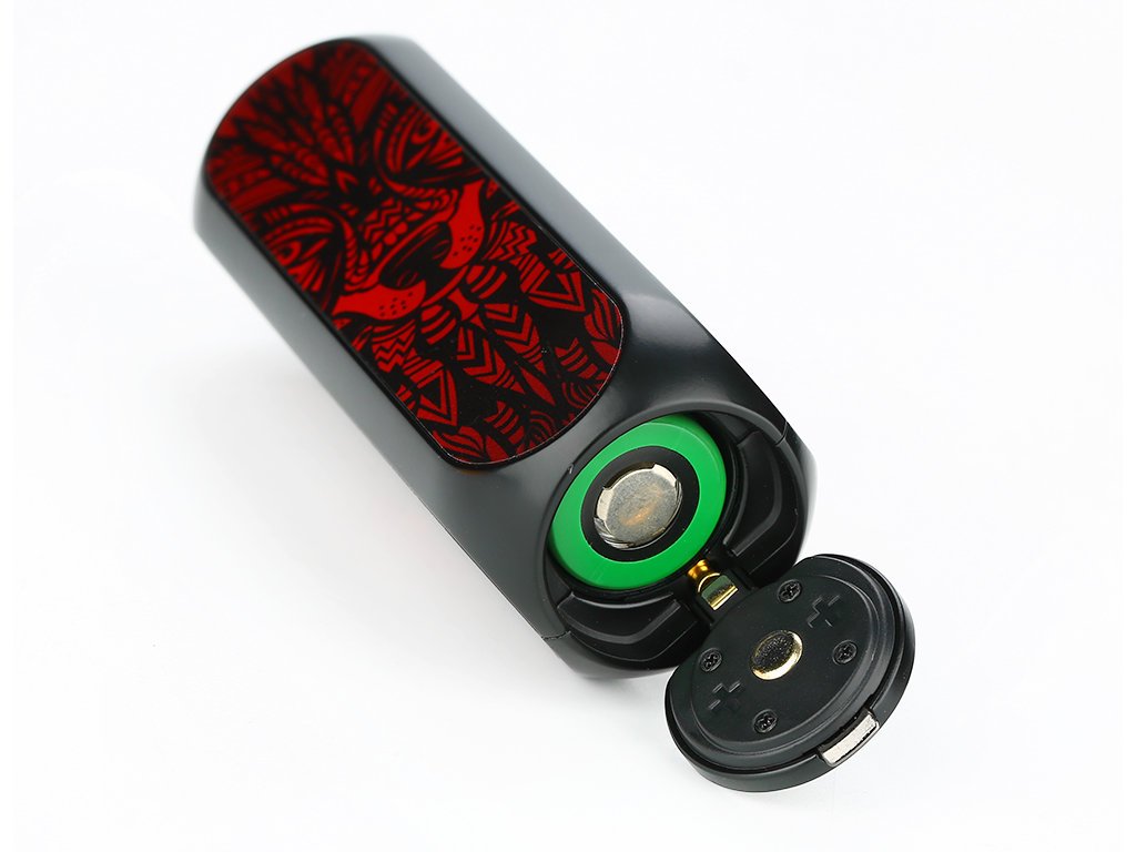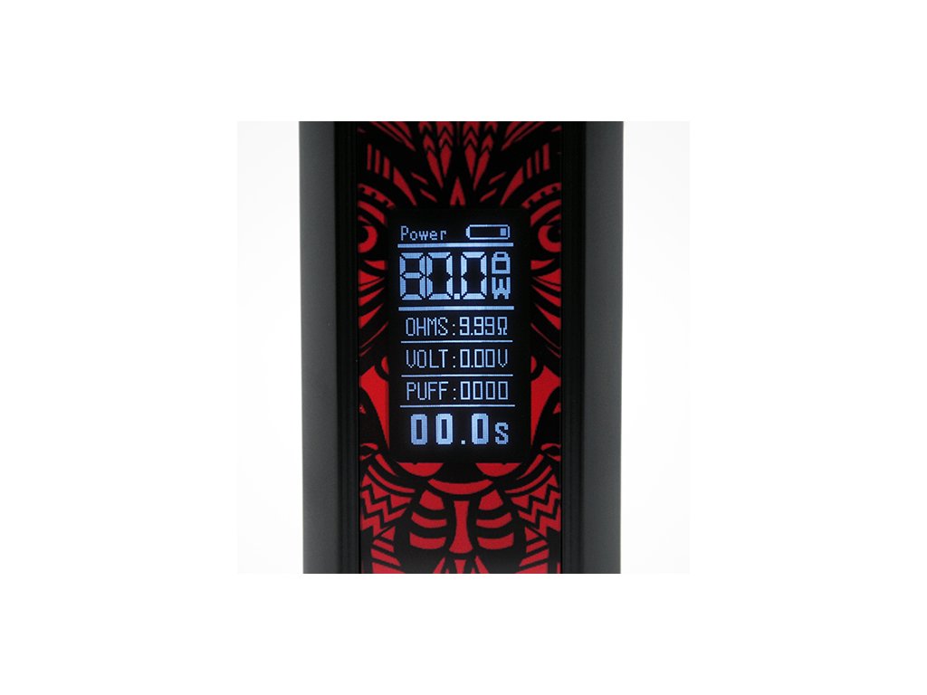Jednou z hlavních novinek je potom přítomnost slotu pro externí baterii. Do modu lze umístit jednu baterii typu 18650, která se postará o bezproblémový chod a velký výkon. Mod pracuje s výkonem až 80 W. Baterie není součástí základního balení a je nutné dokoupit ji samostatně. V případě jejího vybití ji můžete pohodlně dobíjet také přímo v modu. Na předním panelu se nachází microUSB port pro dobíjení, nebo pro budoucí upgrade firmwaru. Baterii můžete dobíjet také ve vlastní externí nabíječce. Uvnitř modu se nachází čip s přehledným uživatelským rozhraním, jež se zobrazuje na displeji v přední části modu. Na displeji si tak pohodlně přečtete údaj o aktuálním změřeném odporu, o stavu vaší baterie, nebo o počtu potahů během zapnutí.